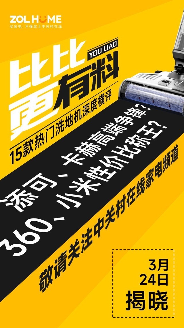 3月24日,15款洗地机的深度横评将会准时上线。这一次,我们将会为你解答你想知道的一切,敬请期待!