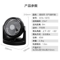 爱丽思CFA-187C空气循环扇,尽显黑色之魅力。具备强大的风力,巧妙地利用物理学原理,达到全室空气循环,改善室内气候,无论任何季节都可以用。设有三档风速,满足您日常生活的不同需求。机身便携,操作简单,是您家中必备的一款家用电器。除此之外,还独有涡轮风筒设计,风力强劲,动静之间,风力持久,确保您一年四季的舒适。 这款空气循环扇近期好价,促销力度大,优惠活动有限,错过就等明年。想拥有这款产品,现在正是最好时候,选择它你将不会后悔的。把握机会,不要让今年的秋天再过于迷茫。取决于您的选择,让生活更极致,体验前所未有的舒适感。别等下一天,让舒适立即开始。