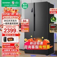 【1.【纤薄嵌入】55cm(不含门体)纤薄设计,满足厨装一体的需求,让您的冰箱与厨房融为一体,省空间更美观~2.【一级能效】24小时耗电量低至0.84度,节省开支更环保,可谓一举两得;3.【矢量双变频】采用容声专利矢量双变频技术,能达到-25℃深冷储鲜以及恒温养鲜效果,这样的冰箱冻得肉肉才是真正的原汁原味;4.【全空间净化养鲜系统】抗菌、净味、除乙烯三合一,实力打造生态养鲜环境5.【干湿分储】定制专属湿度(冷藏抽屉为干湿可调抽屉,有低湿、高湿两档;)6.【360度ALL Around Cooling 】立体环抱送风,均匀高效;避免直吹食物,防止食物风干。