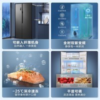 这款冰箱采用纤薄嵌入设计,耗电量低至0.84度,一级能效;内置矢量双变频技术,在-25℃深冷储鲜和恒温养鲜方面表现出色;全空间净化养鲜系统抗菌、净味、除乙烯三合一,打造生态养鲜环境;干湿分储功能让冷藏抽屉可以根据需要调节湿度;360度环抱式送风均匀高效。