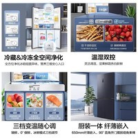外观方面,冰箱采用了轻奢星蕴灰色面板,与现代家居风格完美搭配。还配备了智能WIF1互联功能,用户可以通过手机APP远程控制冰箱温度和运行状态。同时,它还具有650mm纤薄嵌入式设计,可以节省空间又美观大方。