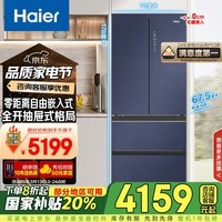 海尔Haier BCD - 410WLHFD4DB1U1风冷多门冰箱,容积达410L,颜色为晶釉蓝。其总容积被划分为214L冷藏室、144L冷冻室和52L变温室,可满足多种食材储存需求。它采用零距离自由嵌入式设计,能完美融入厨房,底部前置散热技术让左右无需预留散热空间,贴墙放更省地。