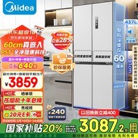 美的M60全净系列MR - 459WUSPZE风冷十字对开门冰箱是家庭的理想之选。它总容积达437升,其中冷藏室容积255升,冷冻室容积154升,还有28升变温室且支持变位变温功能。冷冻能力为7kg/12小时,能快速锁鲜。采用无霜技术避免结霜,净味功能可去除异味与细菌,保障存储环境清洁。运转音仅32dB(A),运行安静。能效等级为一级,综合耗电量0.85kW·h/24h,节能环保。外观是海贝灰色调,时尚且适合现代家居。产品尺寸宽753mm、深600mm、高1910mm,重85kg,易于嵌入橱柜。
