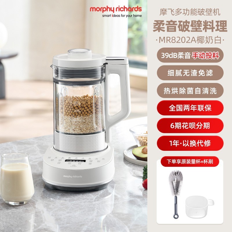 摩飞柔音破壁机家用全自动豆浆机MR8202椰奶白色款,集水豆分离、免煮免泡、变频降噪、预约保温等多项实用功能于一体,轻松应对日常料理需求,大容量设计满足全家使用。