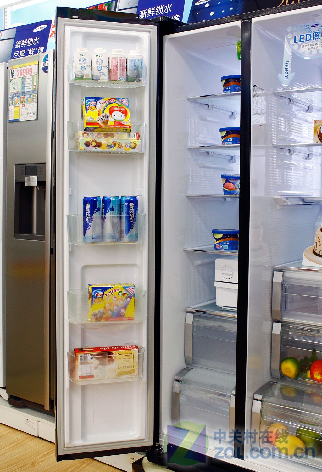 在我们的印象中冰箱作为白色家电往往都是以浅色系为主,同时花纹与装饰品的点缀也仅仅是轻描淡写而已。但是当我们看到三星RS26MBZBL双开门智能变频冰箱的时候,以往对于冰箱外观的认识彻底被打破。深蓝色玻璃印刷面板极富质感,同时律动暗纹装饰更是彰显品位的绝妙设计。时尚典雅的金粉色曲面把手加上如香槟气泡般的华美灯饰,可以说是整体外观的点睛之笔。在我们开启关闭冰箱门的时候,顶部的钻石型LED装饰灯犹豫夜空中的点点繁星绽放出无比诱人的光芒。当然对于这件奢华的艺术品而言内部的智能ECO系统更为强大,遍布在冰箱内外的温度感应器将根据季节变化智能调整运转模式。内外兼修流露华美典范,光芒四溢让优雅与品位在生活中蔓延。