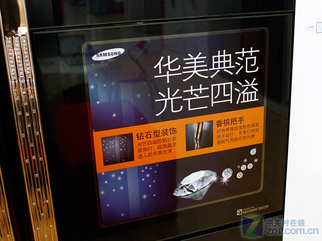 在我们的印象中冰箱作为白色家电往往都是以浅色系为主,同时花纹与装饰品的点缀也仅仅是轻描淡写而已。但是当我们看到三星RS26MBZBL双开门智能变频冰箱的时候,以往对于冰箱外观的认识彻底被打破。深蓝色玻璃印刷面板极富质感,同时律动暗纹装饰更是彰显品位的绝妙设计。时尚典雅的金粉色曲面把手加上如香槟气泡般的华美灯饰,可以说是整体外观的点睛之笔。在我们开启关闭冰箱门的时候,顶部的钻石型LED装饰灯犹豫夜空中的点点繁星绽放出无比诱人的光芒。当然对于这件奢华的艺术品而言内部的智能ECO系统更为强大,遍布在冰箱内外的温度感应器将根据季节变化智能调整运转模式。内外兼修流露华美典范,光芒四溢让优雅与品位在生活中蔓延。