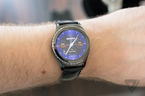 中关村在线报道:三星正式发布了第二代智能手表,包括Gear S2(普通款)和Gear S2 Classic(经典款)两款。在硬件配置上,Gear S2采用双核1GHz处理器,512MB内存,4GB机身存储,内建NFC、蓝牙、Wi-Fi等,可支持移动支付;电池容量250mAh,续航时间为2-3天。经典版呈现黑色的外观设计,采用了传统的皮质表带,标准版则采用了深灰色表壳加上灰色表带,或是银色表壳配白色表带。