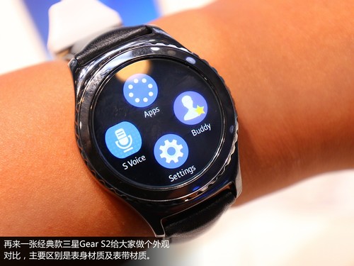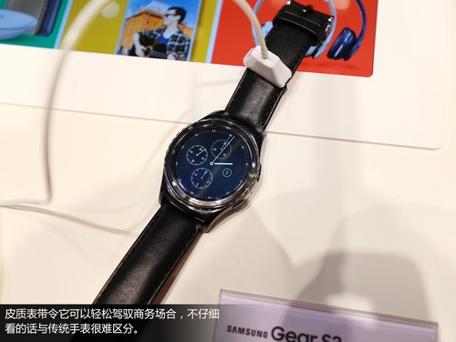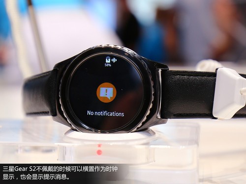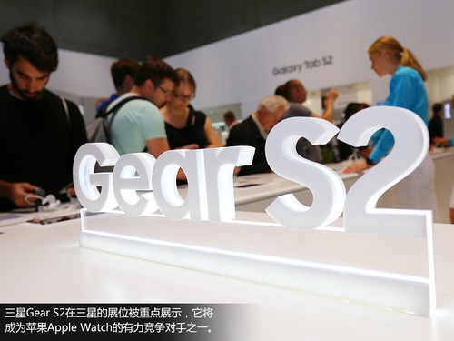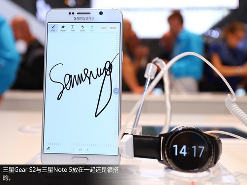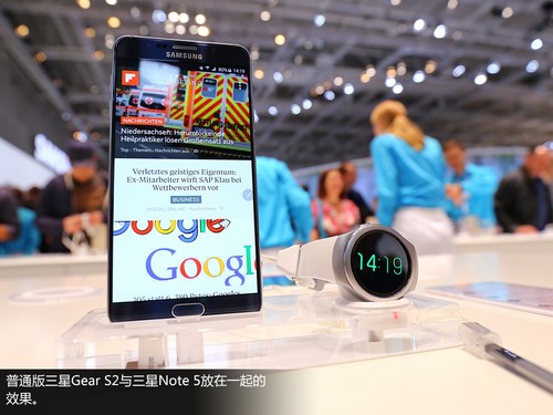 三星虽然已经提早发布了Note 5,但是此次德国IFA依然有重磅产品“三星Gear S2”智能手表。为了同时展示Gear S2连接手机后的功能,它们两个被放在一起重点展示。三星Gear S2分为普通版和经典版两种款式,无论健身运动还是出席商务场合均可驾驭。